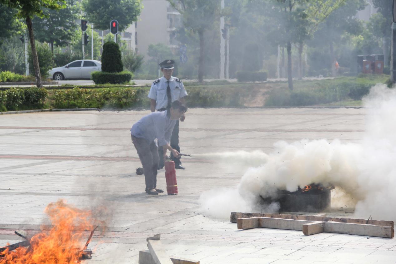 ; 救火技能演練階段,物業(yè)安全主管向安保人員及企業(yè)人員講解了滅火器等消防設備的使用方法,首先講解了救火前使用滅火器三注意:一看指針保證滅火器不過期、二搖瓶體保證干粉松動容易噴出、三拔保險準備滅火。然后給大家演示使用滅火器滅火:一瞄二壓三掃射,即先瞄準火焰根部,在按壓滅火器開關,最后左右掃射火源根部。最后進行滅火器實戰(zhàn)演練。