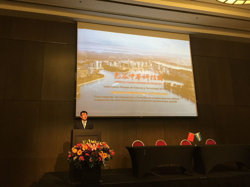 4月13日上午,“中國武漢——阿根廷經(jīng)貿(mào)合作洽談會”在阿根廷首府布宜諾斯艾利斯成功舉辦,湖北省委常委、武漢市市委書記阮成發(fā)、中國駐阿根廷大使楊萬明,阿根廷—中國生產(chǎn)及工商業(yè)協(xié)會主席carlios;pedro;spadone等領(lǐng)導(dǎo)和嘉賓出席了會議并致辭,來自阿根廷政府和工商界、企業(yè)代表,華商僑領(lǐng),商會代表及媒體近400余人參加了會議。中華園作為武漢市重點推薦的企業(yè)代表,在會上進行了專題宣傳推介。重點向阿方企業(yè)、華僑華商及僑商協(xié)會介紹了光谷中華科技園的投資環(huán)境、規(guī)劃設(shè)計、產(chǎn)業(yè)方向、政策優(yōu)勢等基本情況,重點推介了今年即將動工建設(shè)和啟動全球招商的“華人華僑創(chuàng)新創(chuàng)業(yè)中心”、以及環(huán)牛山湖綠道及文化旅游帶等項目,引起了與會嘉賓和駐阿華僑華商的廣泛關(guān)注。期間,張曉玲副主任還與阿根廷華人進出口商會會長袁建平先生、阿根廷華僑華人聯(lián)合總會主席陳瑞平先生、阿根廷浙江總商會會長包偉將先生等華人企業(yè)、商會代表進行了深入對接,探討了在中華園建設(shè)開發(fā)南美風(fēng)情園及文化旅游項目的可行性,同時誠摯邀請阿根廷華僑華商參加今年6月份在武漢舉辦的第十六屆華創(chuàng)會,并赴中華科技園考察參觀。