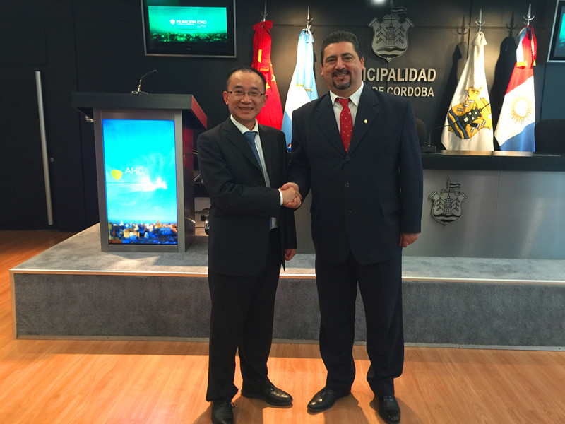 4月10日,代表團一行赴武漢市友好城市科爾多瓦參加了雙方城市友好合作交流洽談會,受到了科爾多瓦市政府秘書長roberto;m.yalovetzky先生的熱情接待,同時與阿根廷中華工商企業(yè)聯(lián)合總會徐萬壽先生等當(dāng)?shù)厝A僑華商代表進行了交流和洽談。
